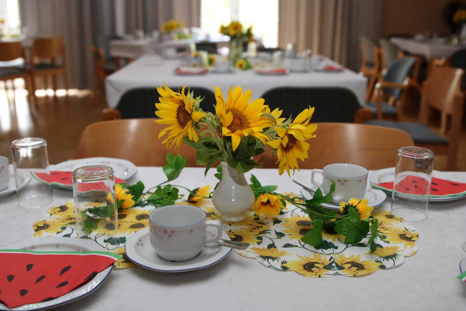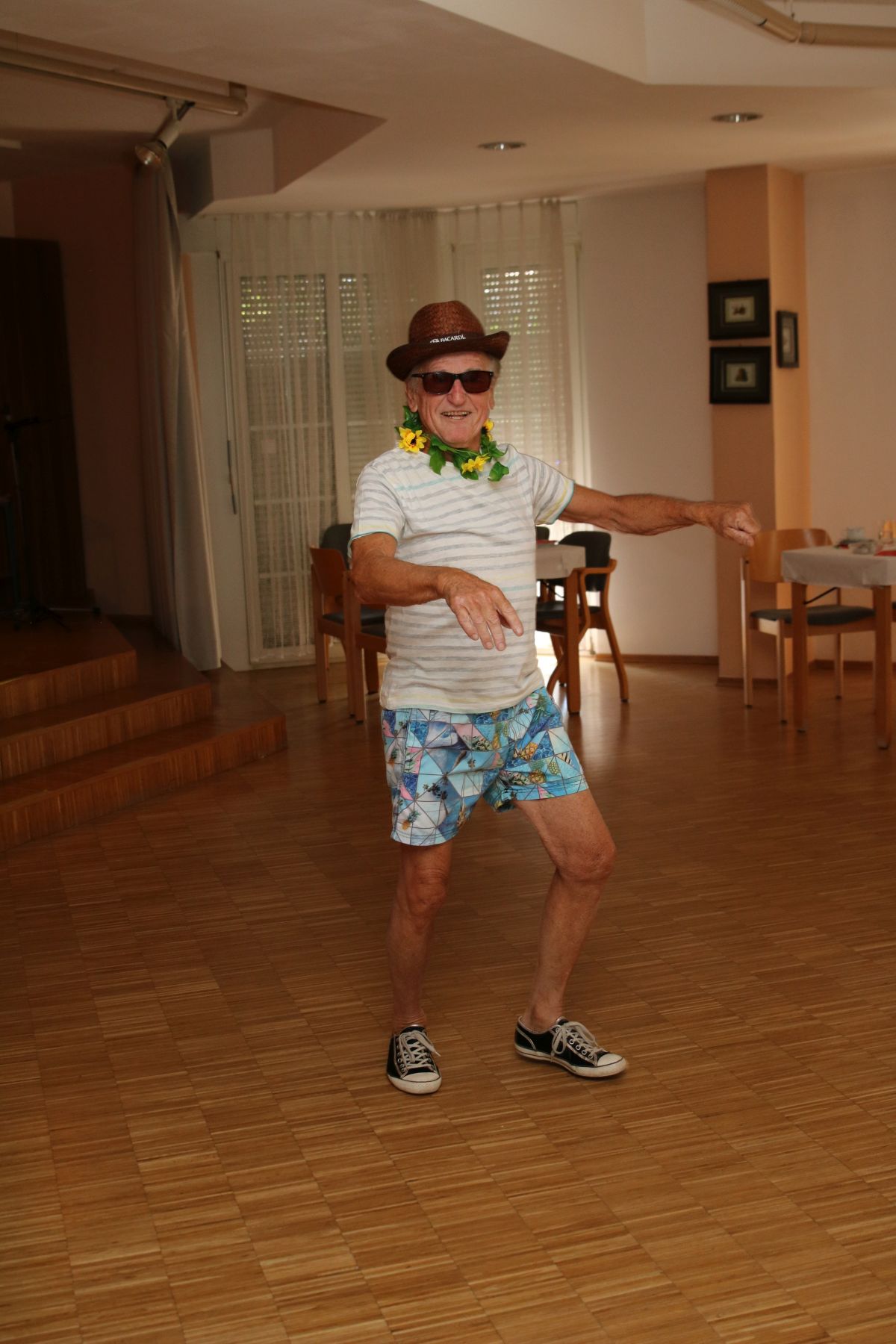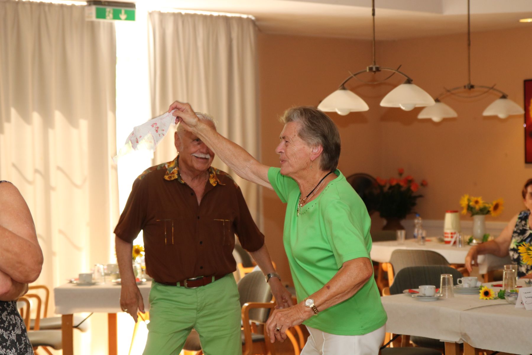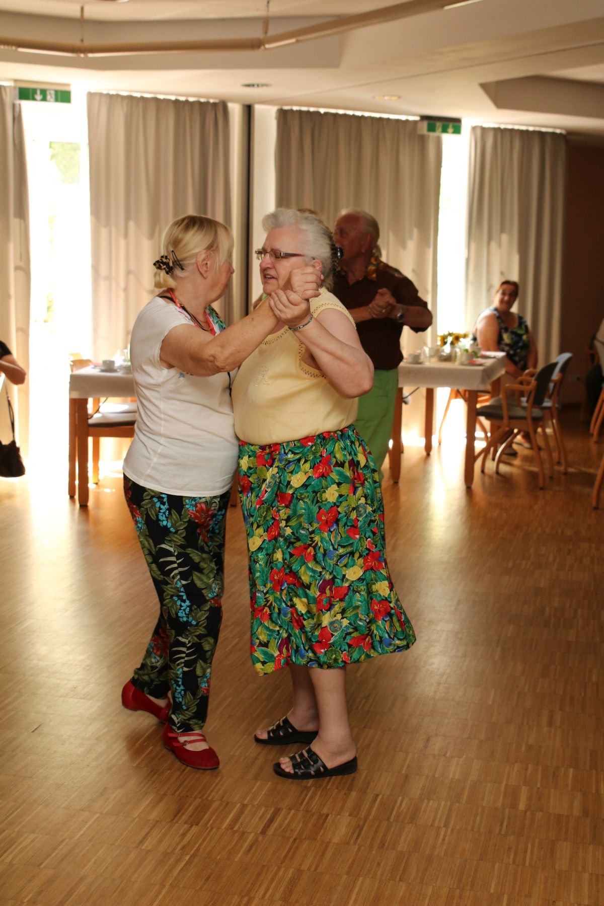 Im Juli holten wir uns die Sonne aufs Tanztee-Parkett und ließen auf den Tischen gelbe Sonnenblumen blühen. Bei sommerlichen Temperaturen heizte DJ Manfred allen Sonnenanbetern mit den besten Hits und Wunschtiteln aus den 50ern, 60ern und 70ern kräftig ein. Auch unser Animateur Klaus legte eine heiße Sohle aufs Parkett und wurde dafür mit tosendem Beifall belohnt.