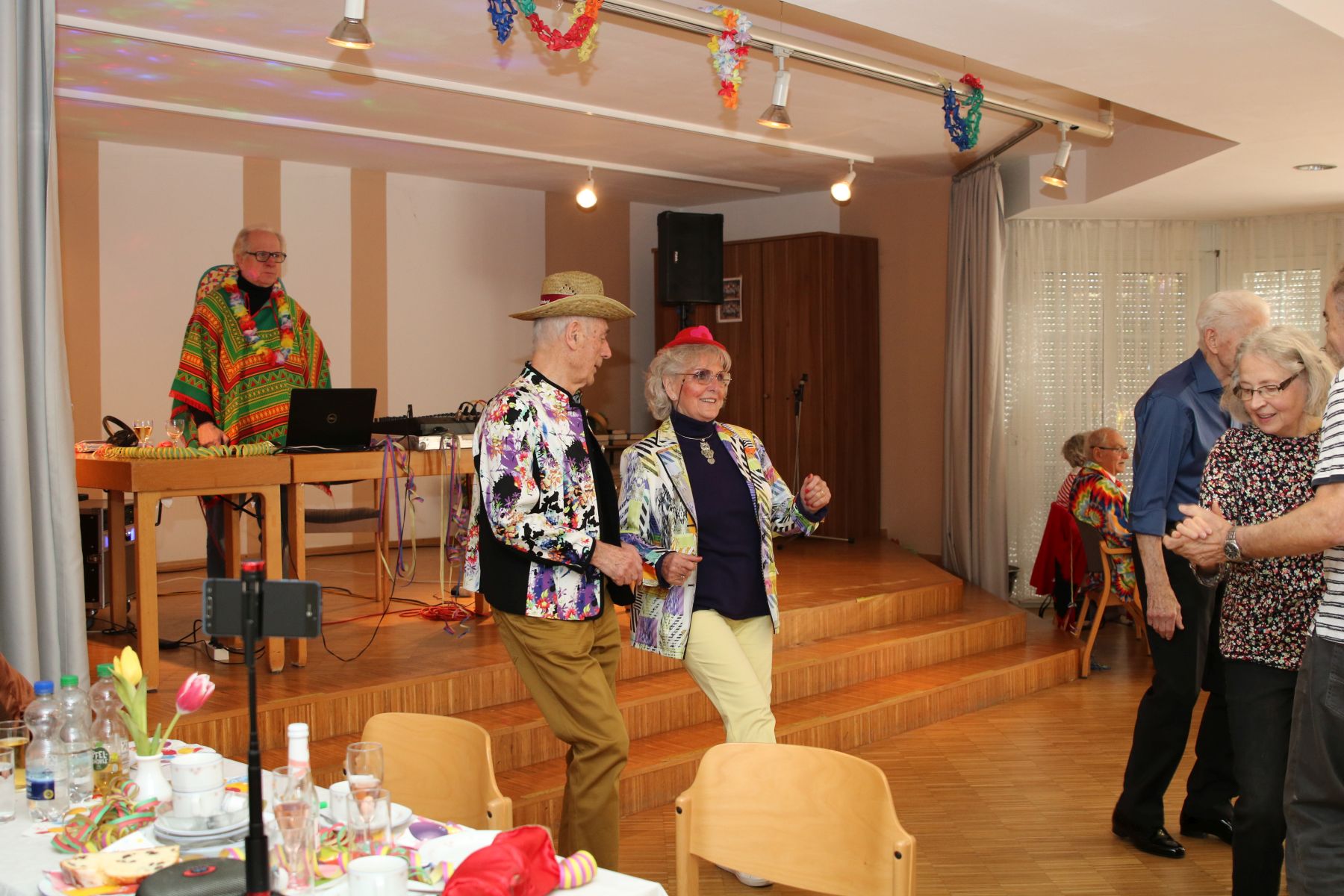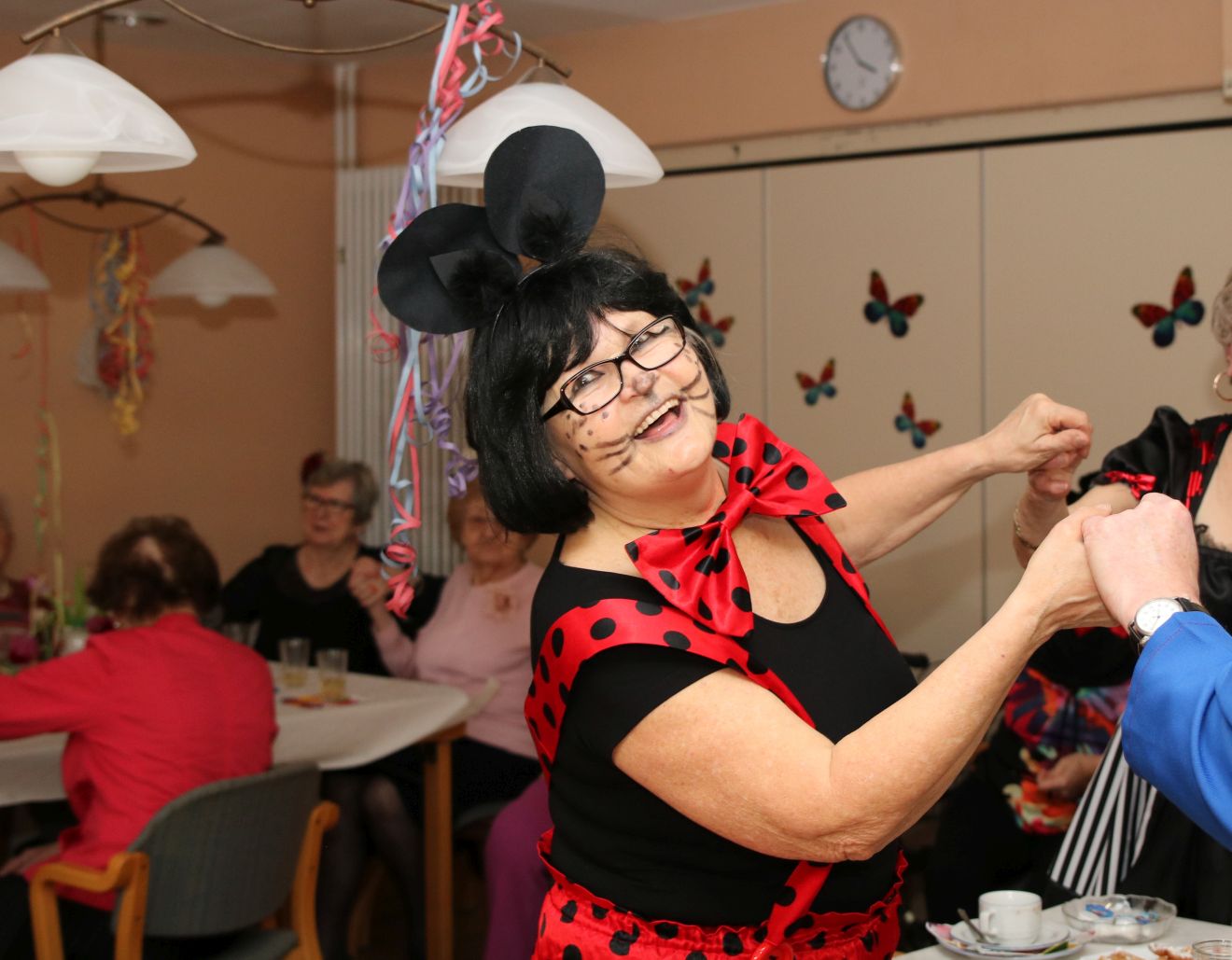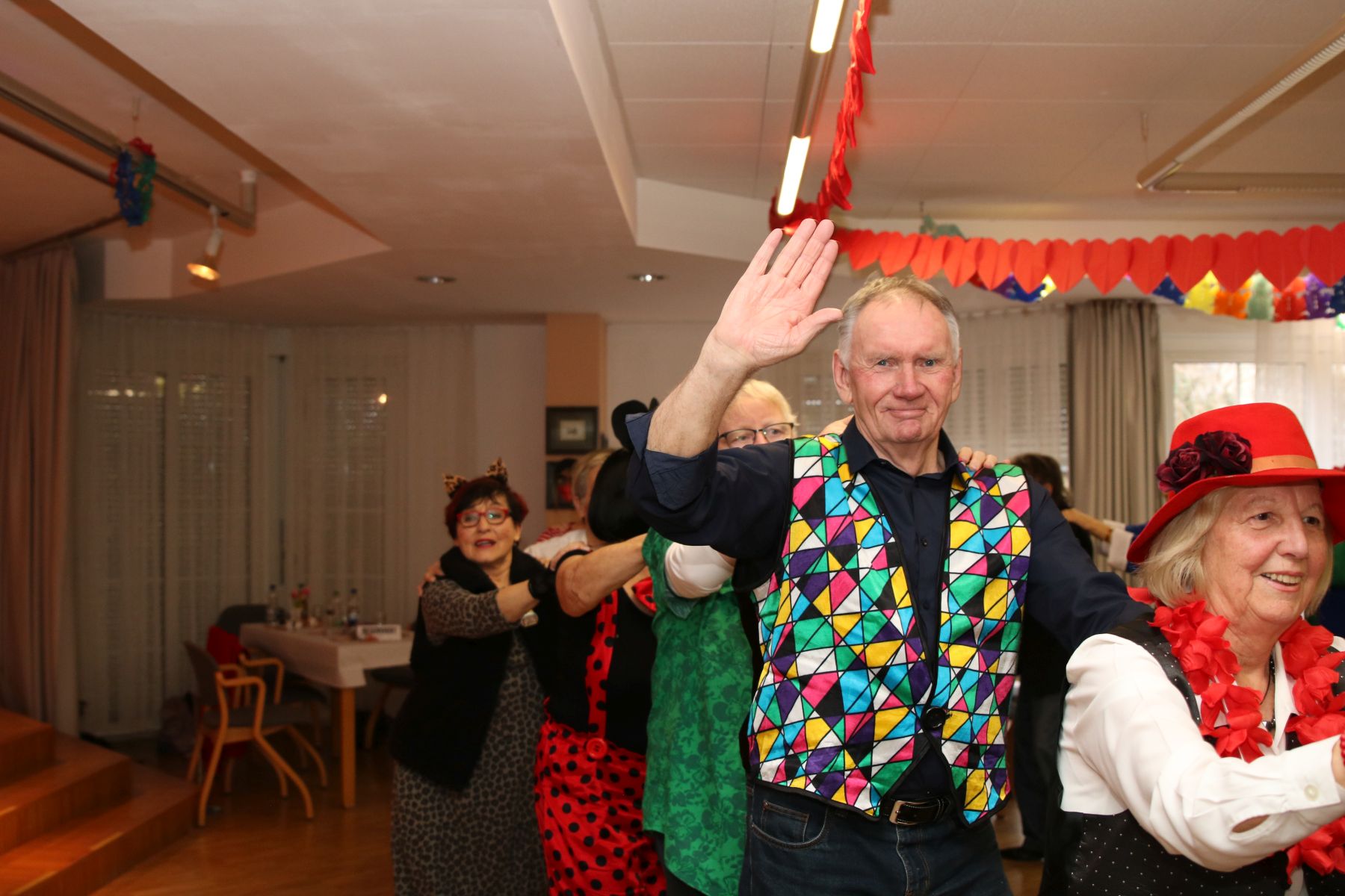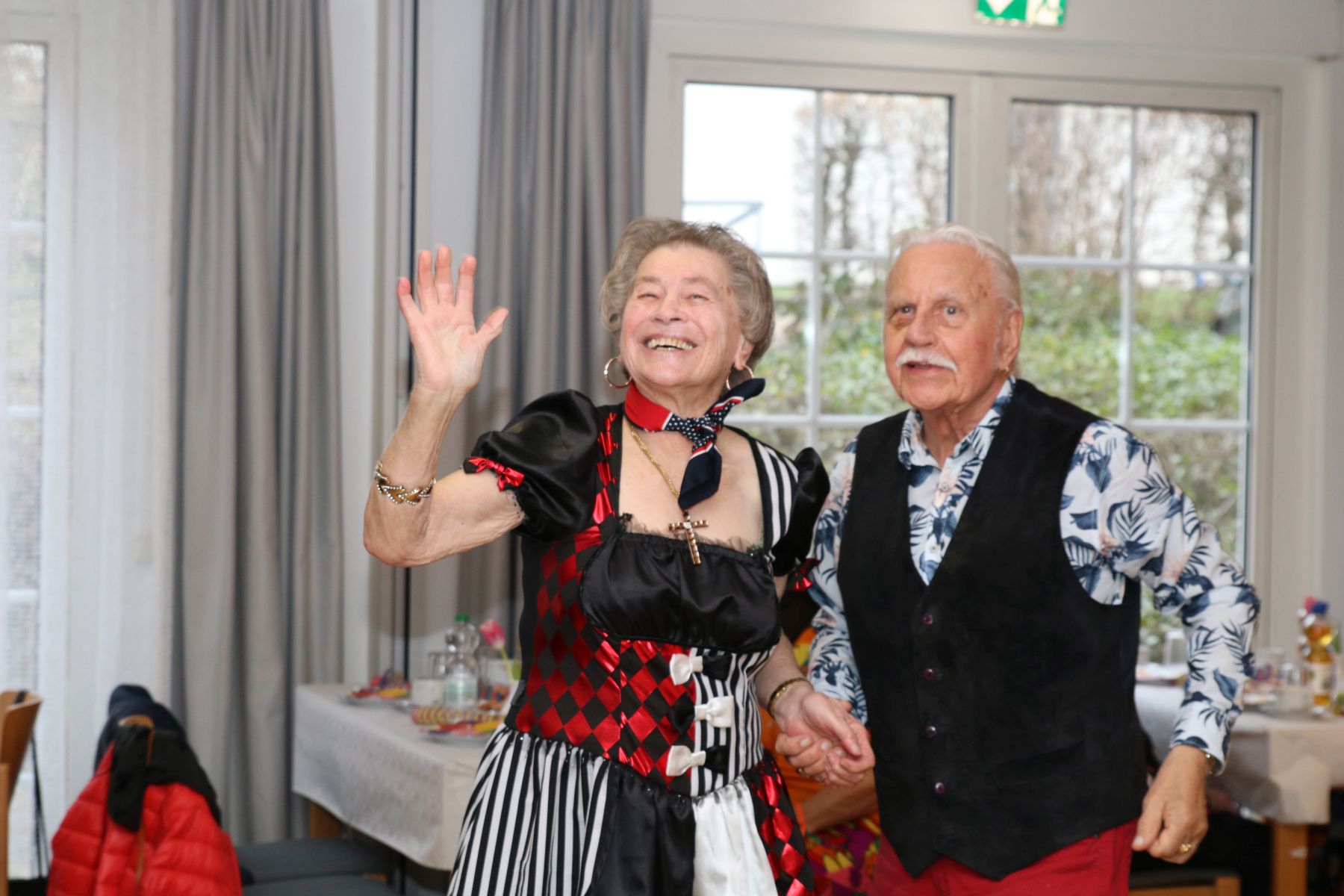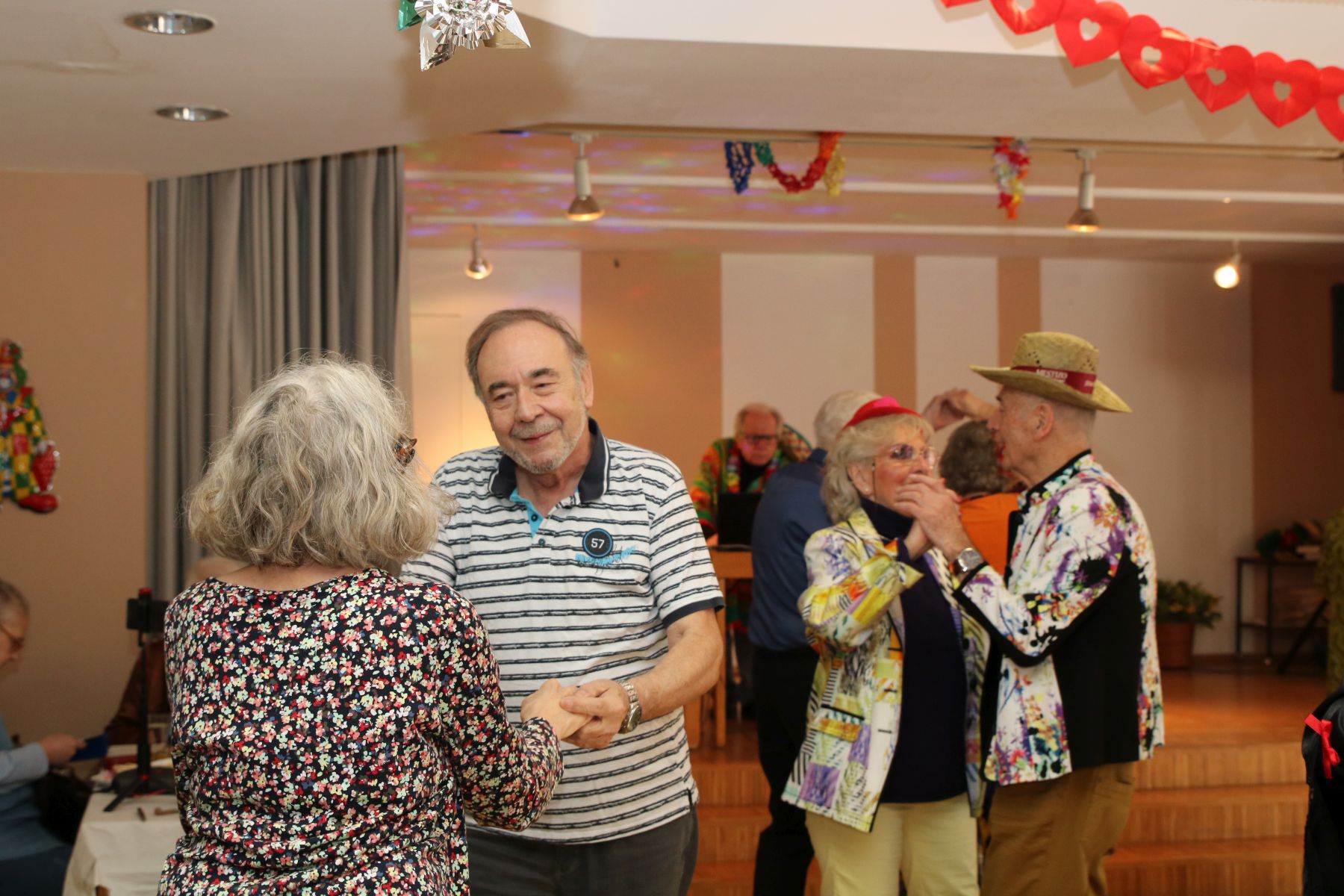Im Februar wurde es wieder bunt beim Tanztee in der Offenen Tür. Bei unserer Faschingsparty unter dem Motto „Narri, Narro – Fasching isch do!“ zeigten sich unsere Gäste in den ausgefallensten Kostümen: Cowboys, Hippies und Miezekatzen schwangen das Tanzbein und bildeten zu den größten Karnevalhits von DJ Manfred eine mitreißende Polonaise durch den Tanzteesaal. Als ganz besonderen Special-Guest begrüßten wir die Schlagersängerin Milva (alias Klaus), die alle mit ihrem roten Wallehaar verzauberte.