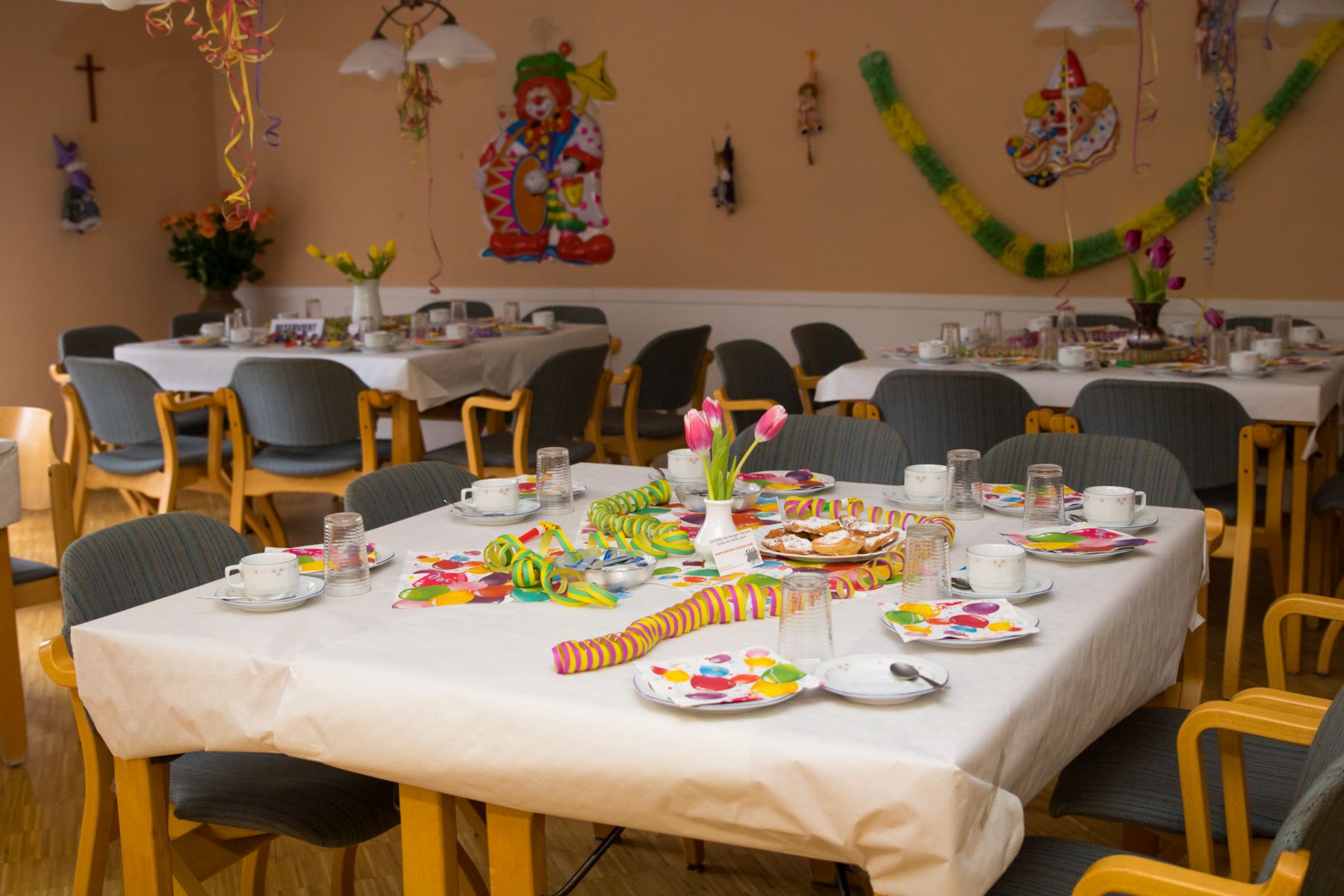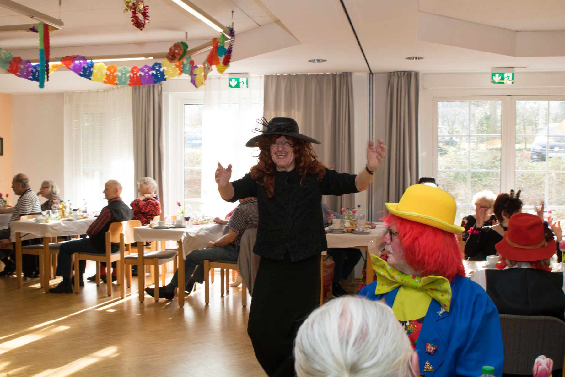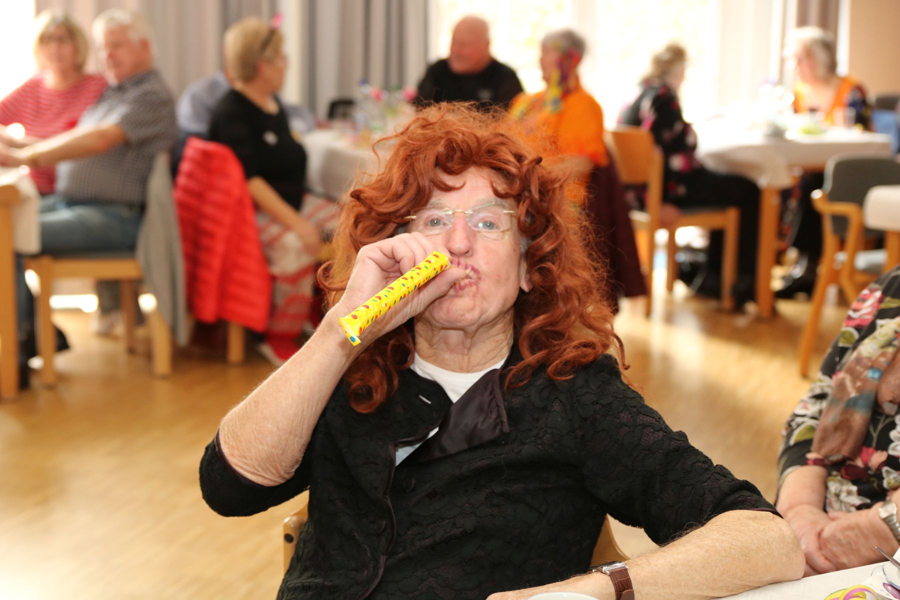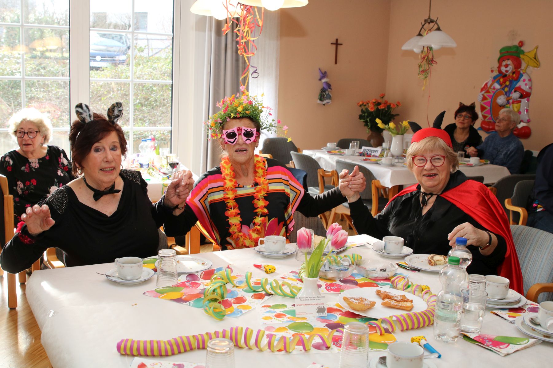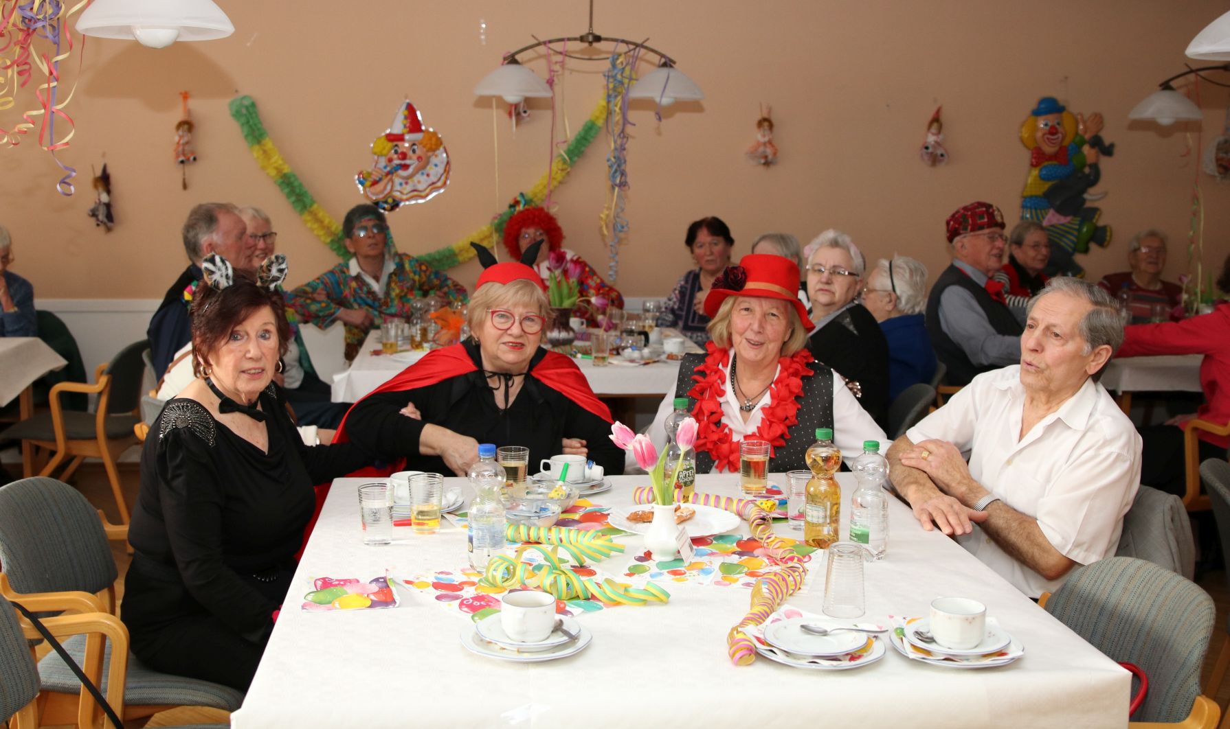 Im Februar wurde es wieder bunt beim Tanztee in der Offenen Tür. Bei unserer Faschingsparty unter dem Motto „Narri, Narro – Fasching isch do!“ zeigten sich unsere Gäste in den ausgefallensten Kostümen: Cowboys, Hippies und Miezekatzen schwangen das Tanzbein und bildeten zu den größten Karnevalhits von DJ Manfred eine mitreißende Polonaise durch den Tanzteesaal. Als ganz besonderen Special-Guest begrüßten wir die Schlagersängerin Milva (alias Klaus), die alle mit ihrem roten Wallehaar verzauberte.