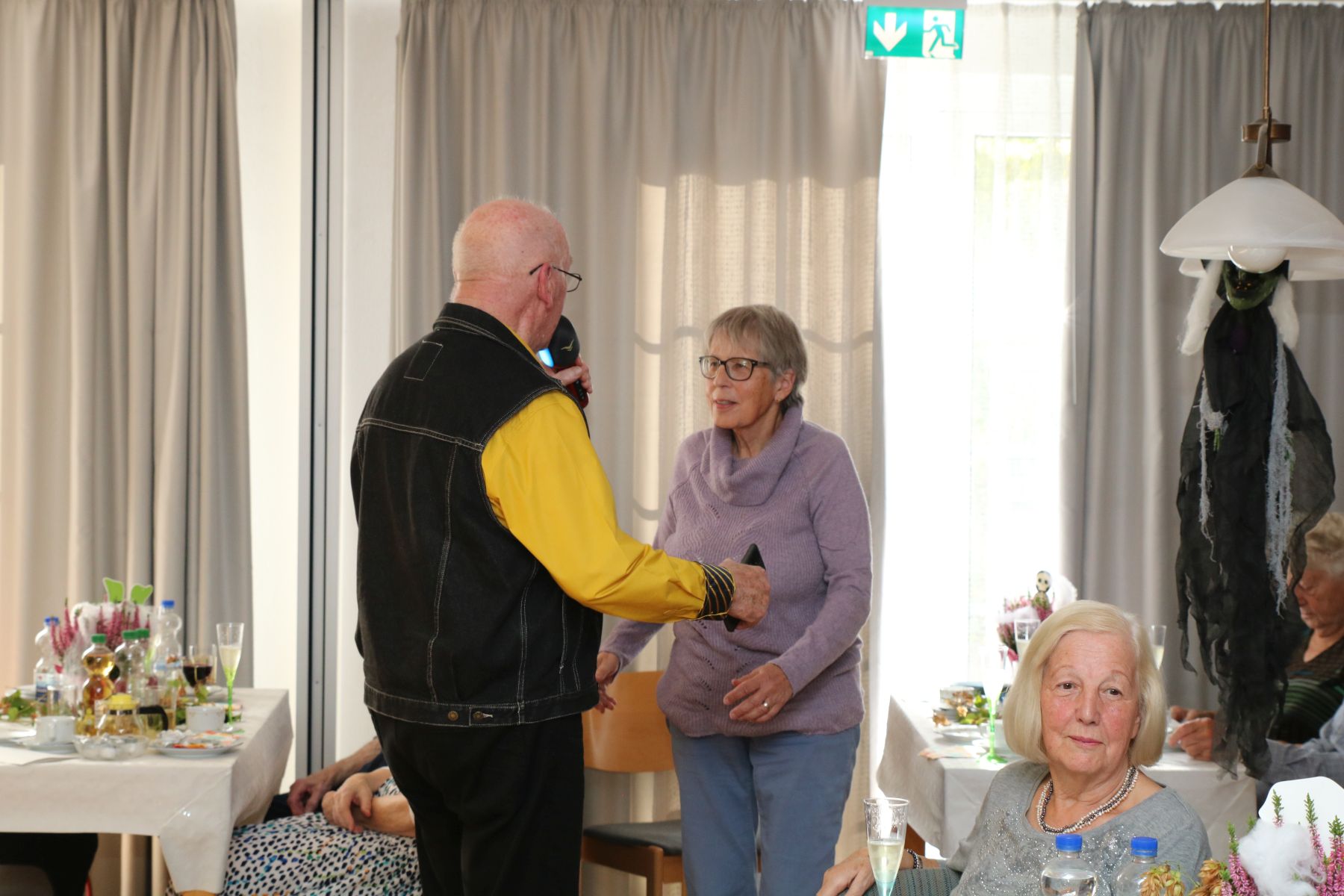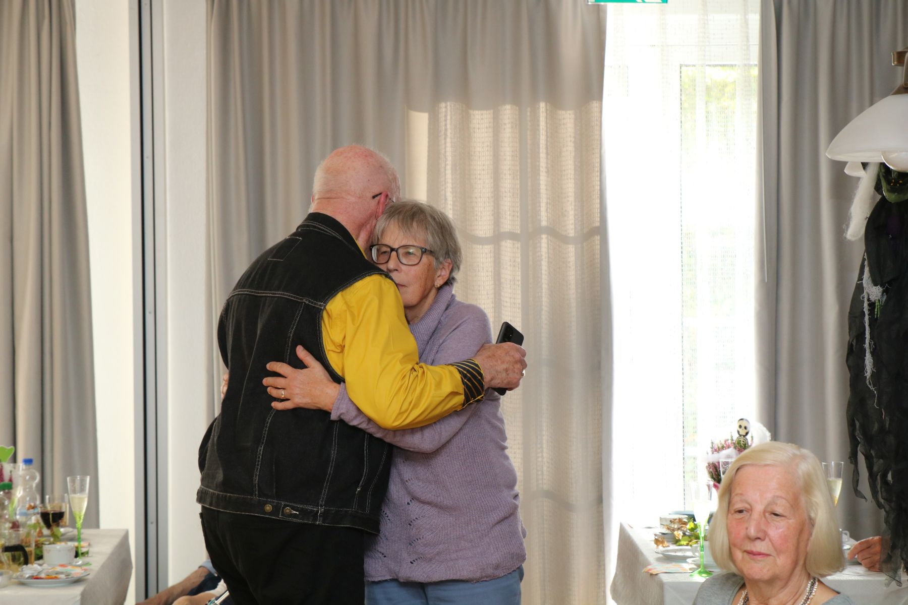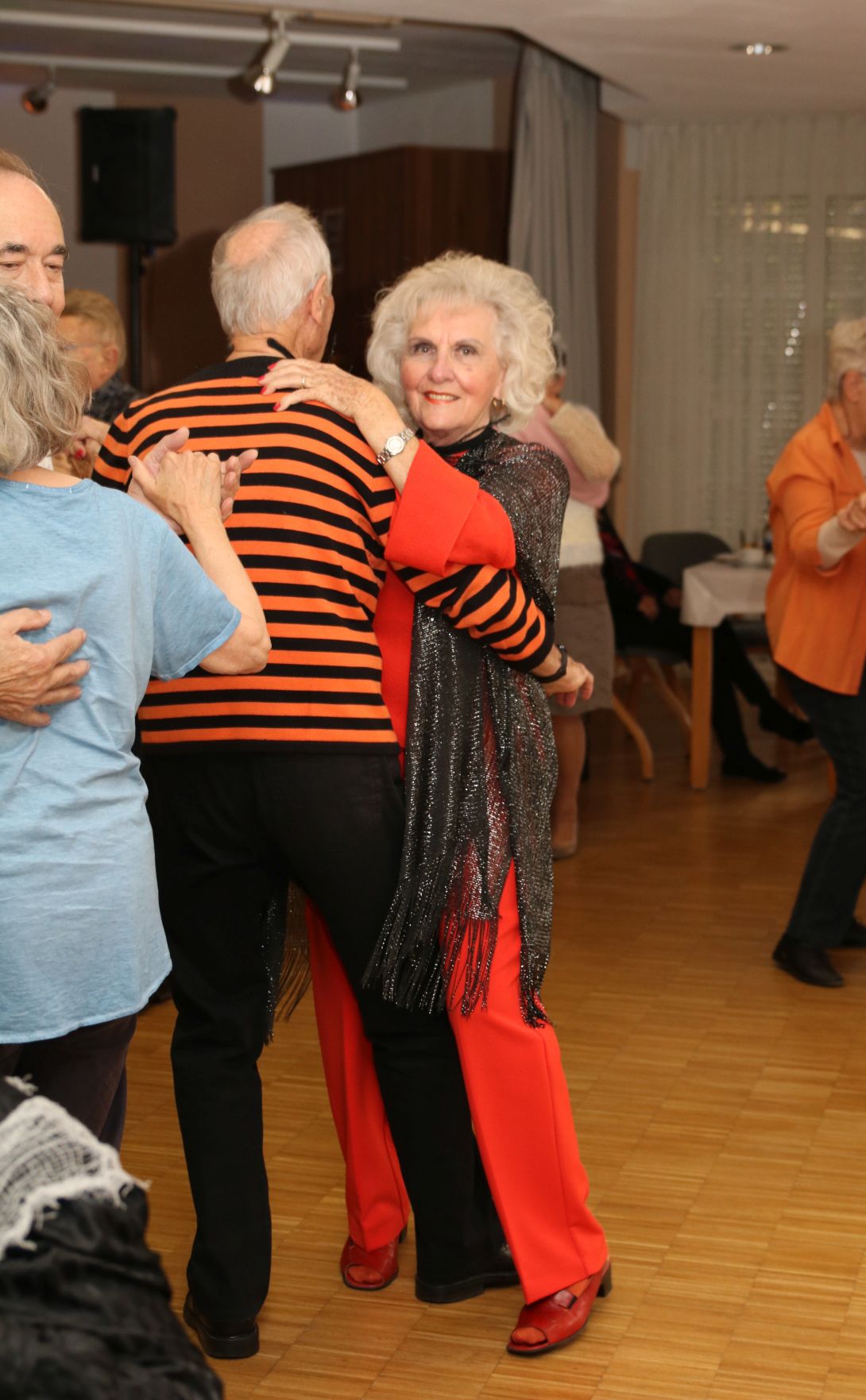 Ein paar liebe Gäste überraschten alle Tanzteebesucher und die Ehrenamtlichen mit mehreren Flaschen Sekt, um ihre Hochzeit zu feiern. Seiner Angebeteten sang der Gatte ein liebevolles Ständchen und alle prosteten ihnen einen Glückwunsch zu. Was für ein gelungener Nachmittag!