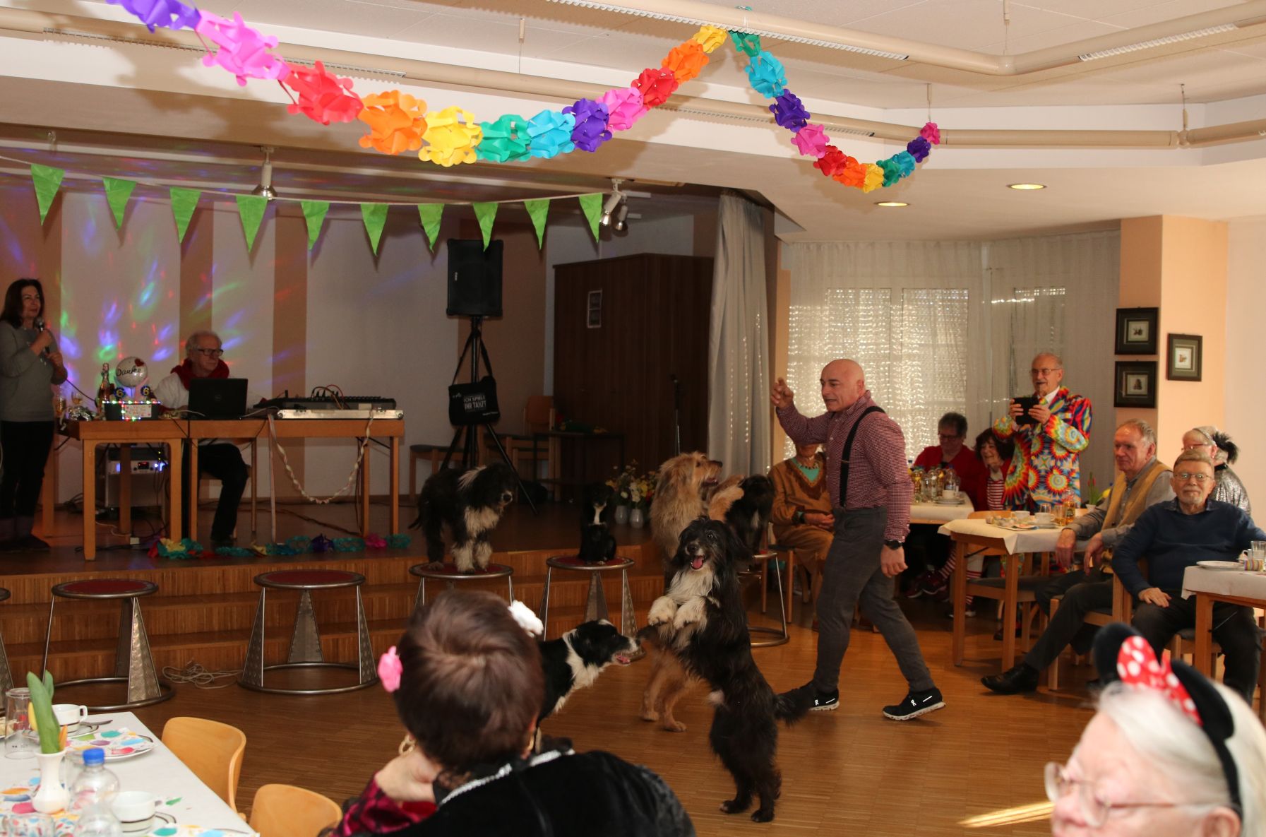 Eine ganz besondere Freude machte uns der Circus Bely. Der traditionsreiche Zirkus in der neunten Generation hat sein Quartier aktuell in Rastatt bezogen und kurzerhand beschlossen uns beim Tanztee zu besuchen! Willi Adrian und seine Hunderevue hatte einen großen Auftritt. Die Vierbeiner eroberten das Parkett mit Flick-Flacks, Hindernislauf und Sprüngen durch Reifen. Natürlich durfte auch ein Tänzchen in Tanztee-Manier auf den Hinterbeinen nicht fehlen. Was für ein Spaß! Ein herzliches Dankeschön an den Circus Bely und seine Hundetruppe für diesen charmanten Besuch.