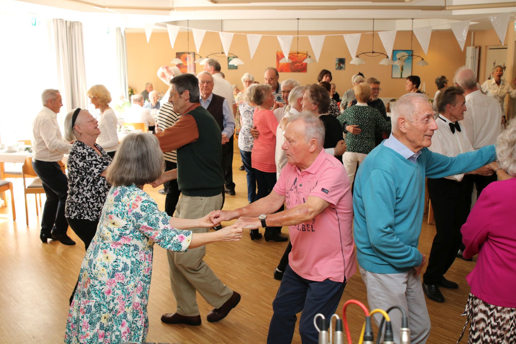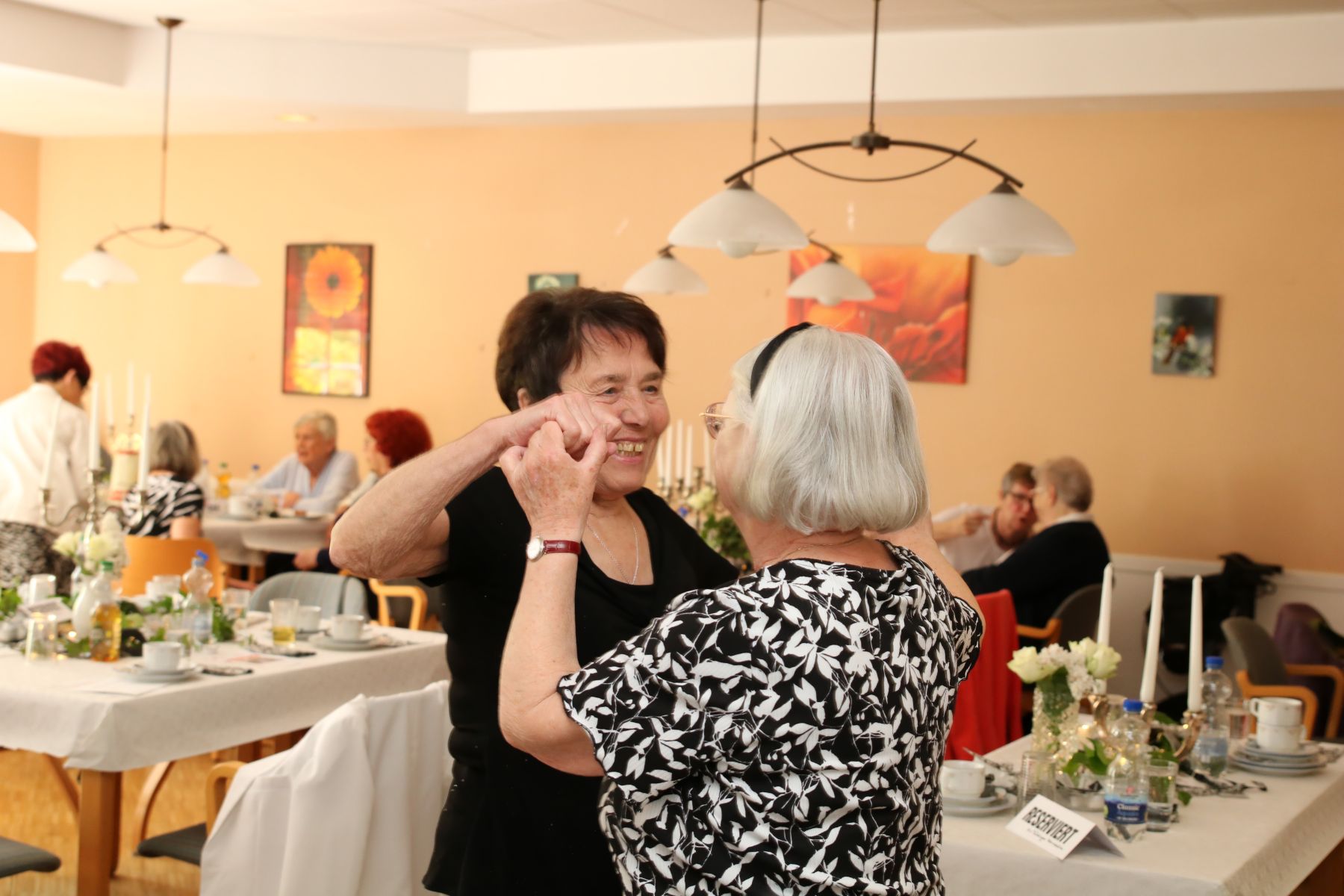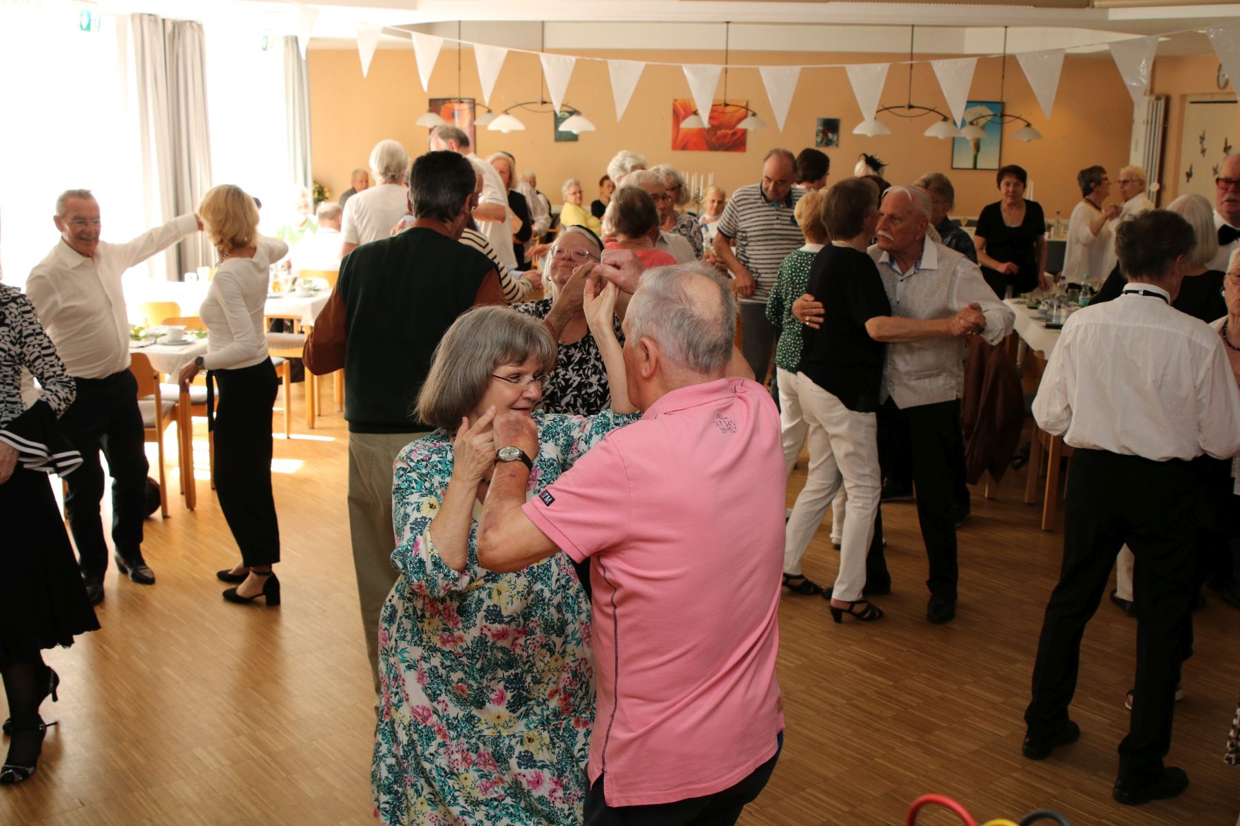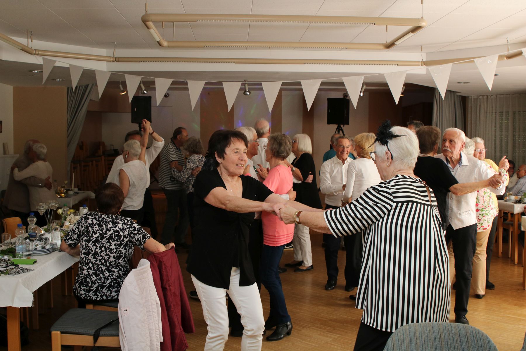 Die selbstgemachten Kuchen von unserer Lieblingsbäckerin Angelika sorgten für süße Gaumenfreuden. DJ Manfred legte Musikwünsche und beliebte Hits auf, sodass die Tanzfläche schnell erobert wurde. Walzer, Foxtrott, Einzeltänze und Cha-Cha-Cha – alle schwangen das Tanzbein und genossen den Nachmittag in vollen Zügen.