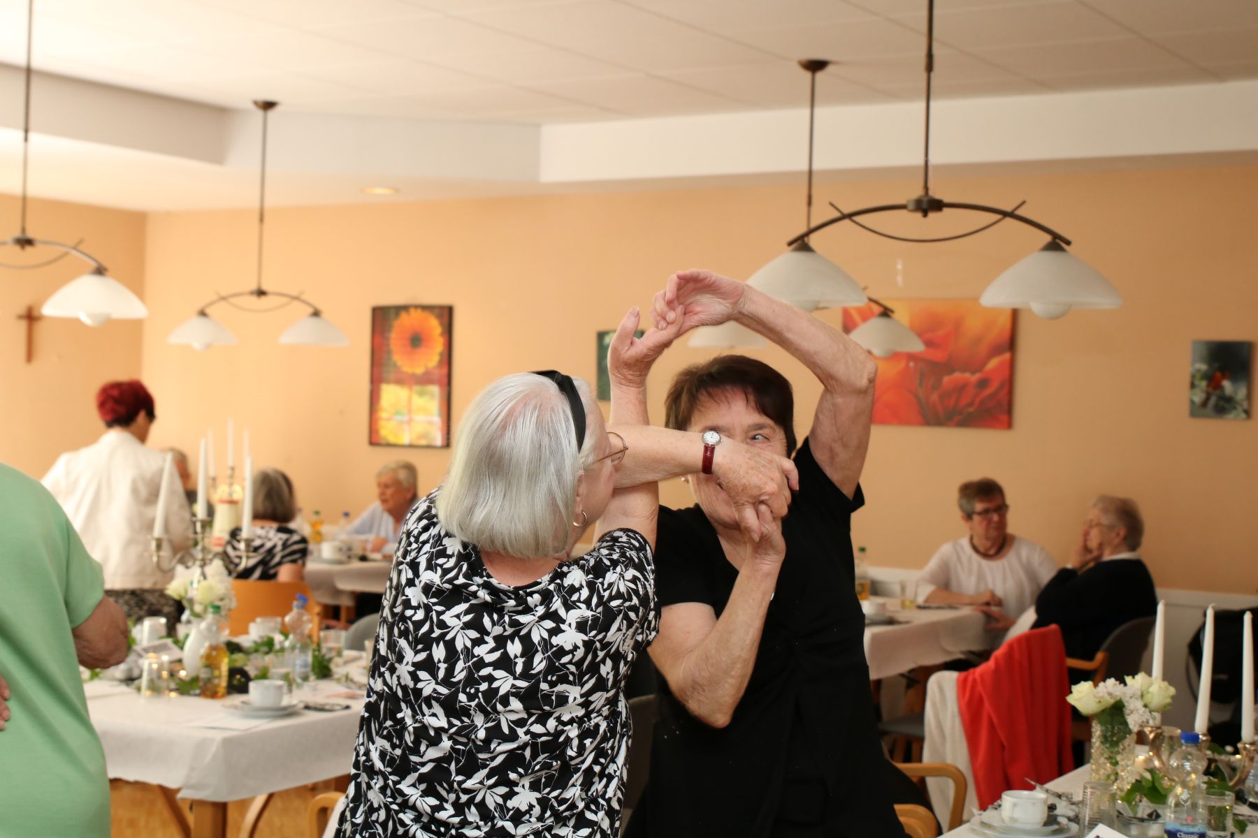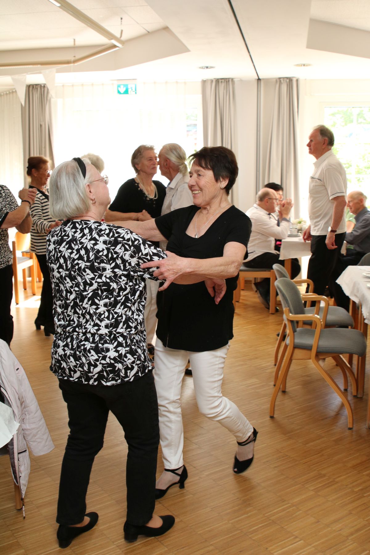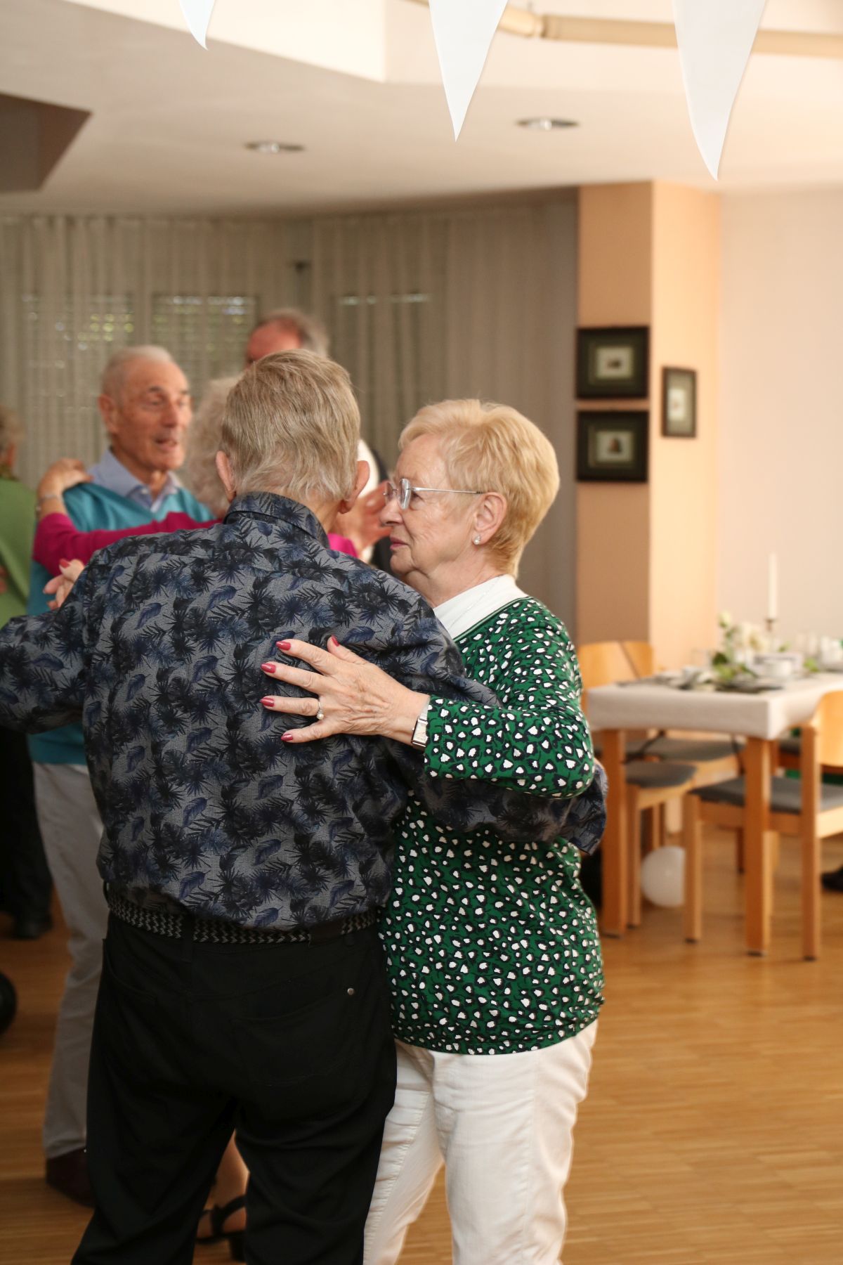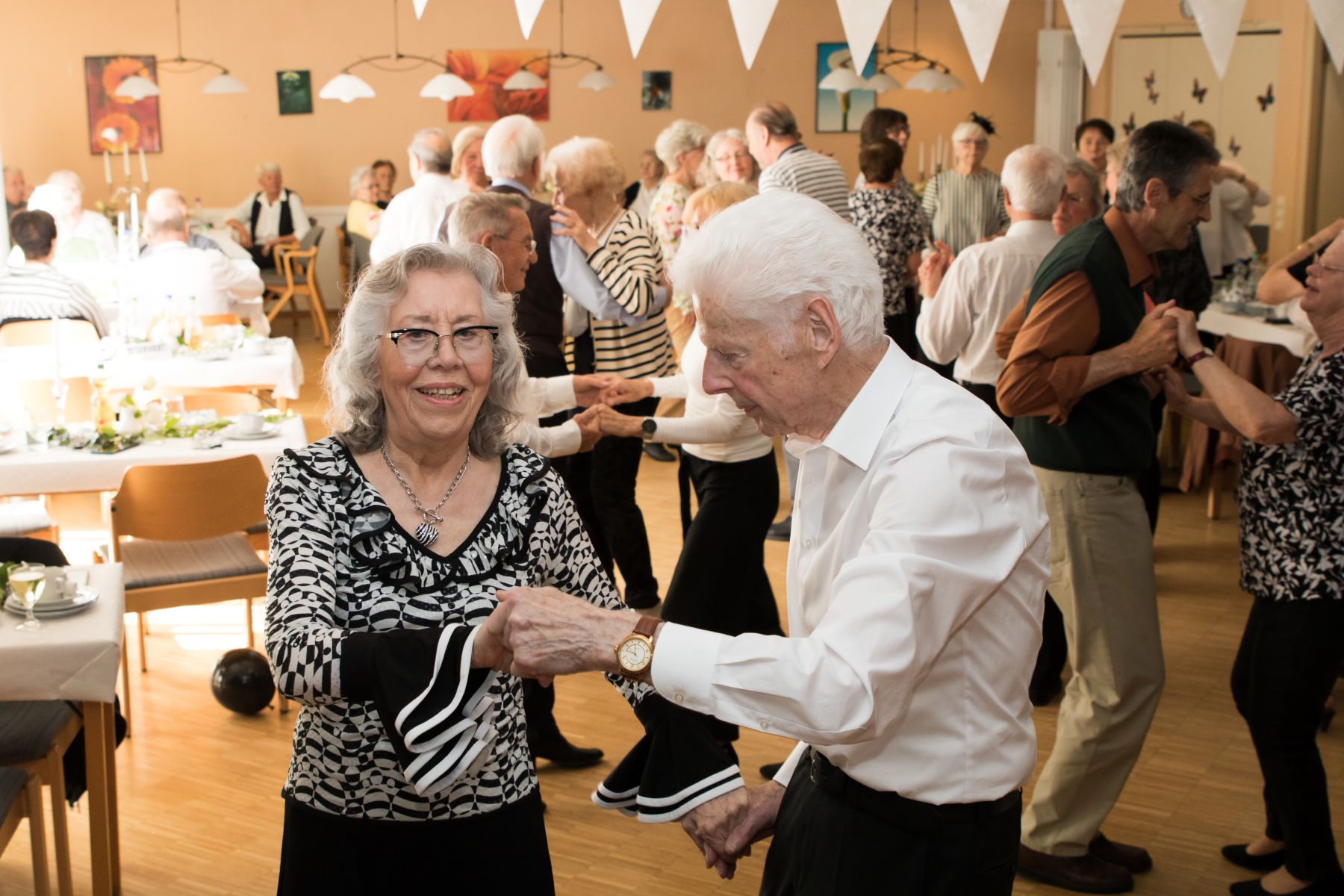 Die selbstgemachten Kuchen von unserer Lieblingsbäckerin Angelika sorgten für süße Gaumenfreuden. DJ Manfred legte Musikwünsche und beliebte Hits auf, sodass die Tanzfläche schnell erobert wurde. Walzer, Foxtrott, Einzeltänze und Cha-Cha-Cha – alle schwangen das Tanzbein und genossen den Nachmittag in vollen Zügen.