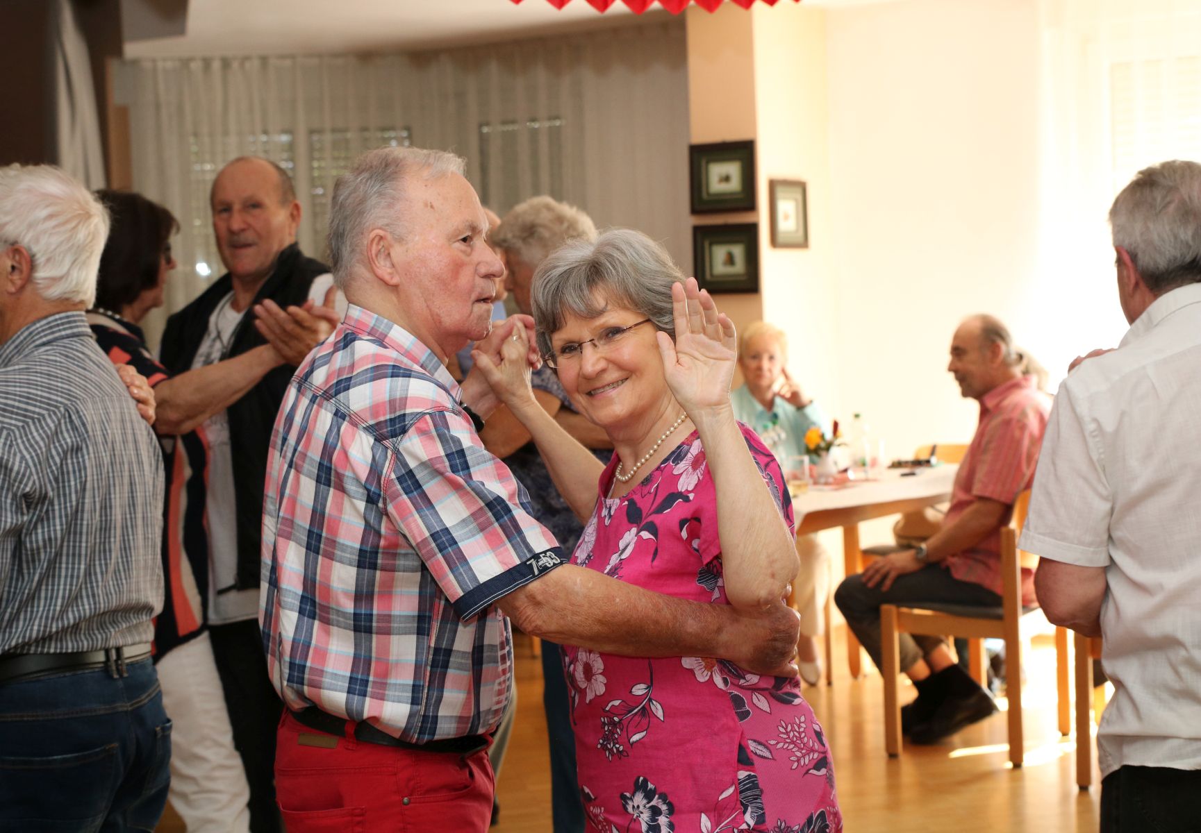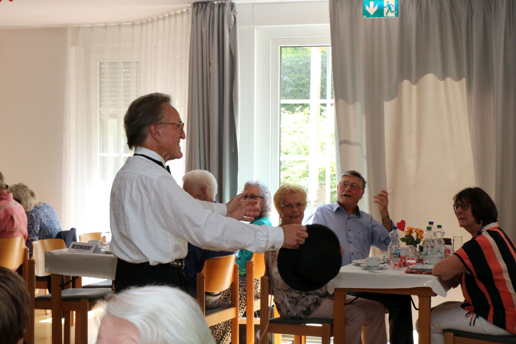 Im Mai stand der Tanztee ganz im Zeichen des Herzens. Unter dem Motto „Herzlicher Muttertag“ deckten die ehrenamtlichen Helferinnen und Helfer den Saal wieder liebevoll ein. Euer Dekoteam dekorierte mit Rosen, Herzsteckern, Girlanden und herzigen Servietten auf den Tellern. Der Hefezopf von unserer Kuchenbäckerin Angelika wurde an diesem Tag mit einer Extraportion Liebe zubereitet. Bei den ausgewählten Hits der 60er, 70er und 80er sowie allerlei Musikwünschen spielte sich DJ Manfred direkt in die Herzen und Beine der Tänzerinnen und Tänzer. Rosenkavalier Klaus erfreute die Damen mit überreichten Rosen.