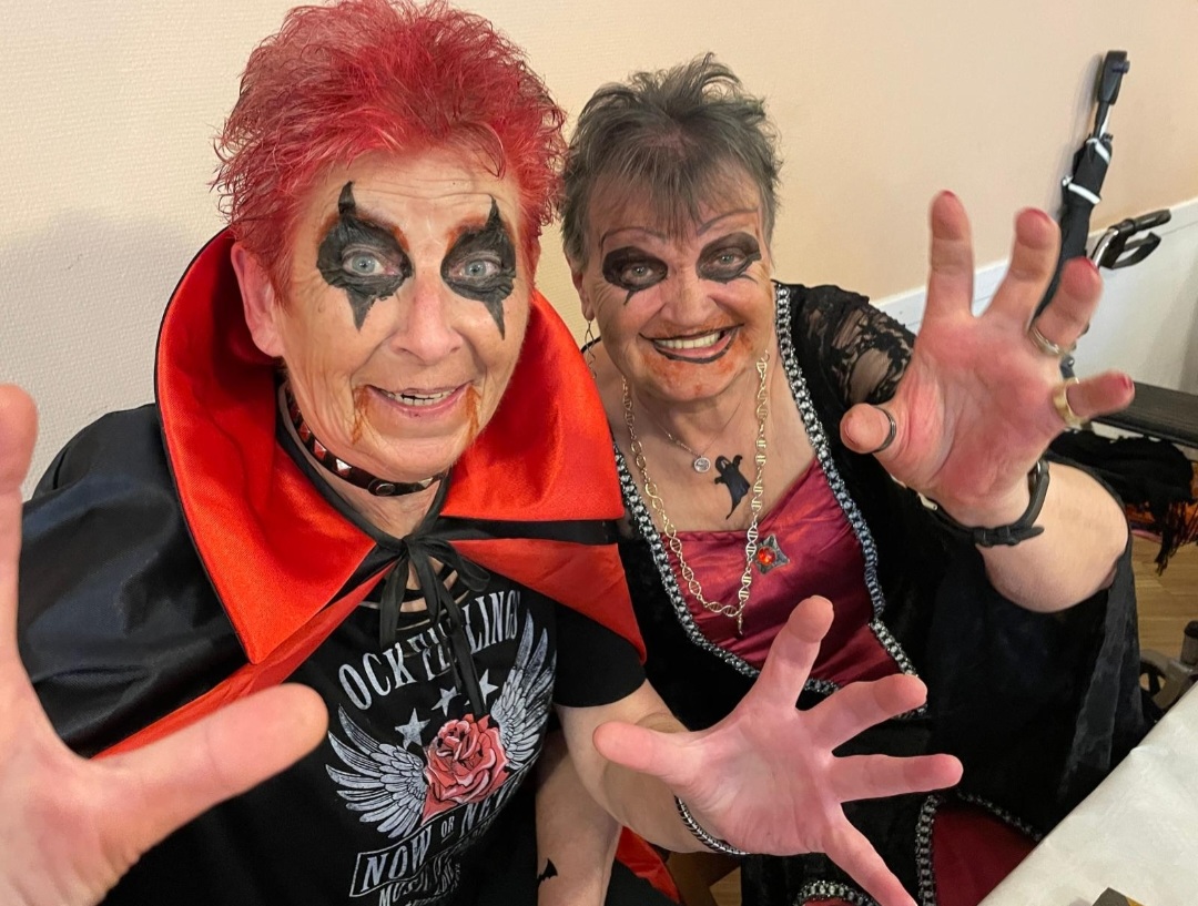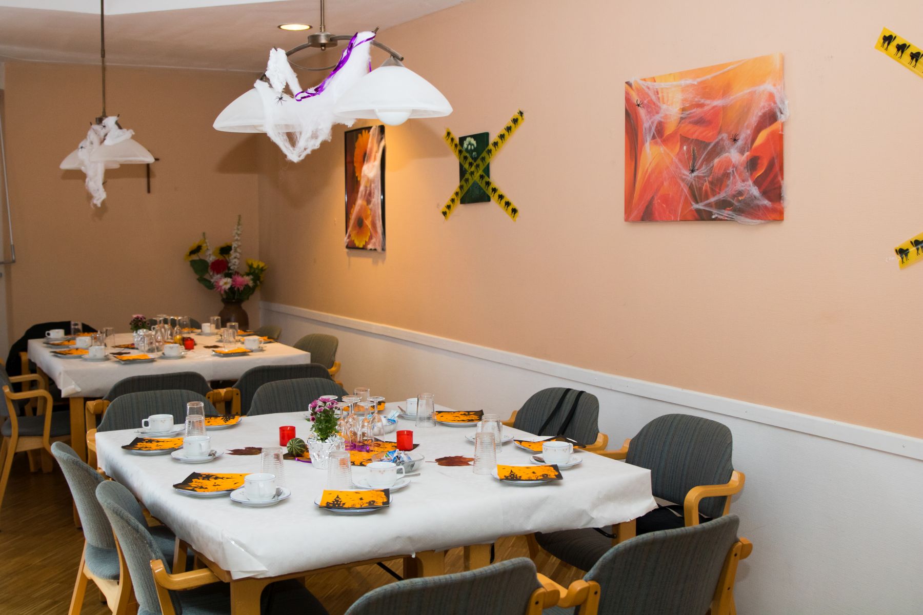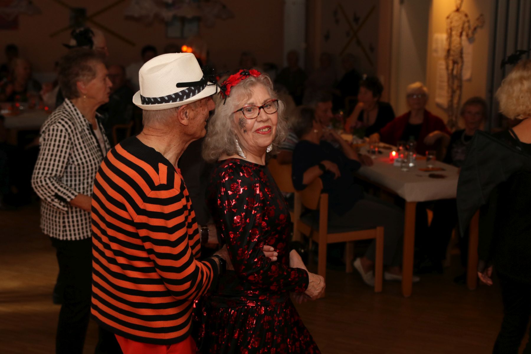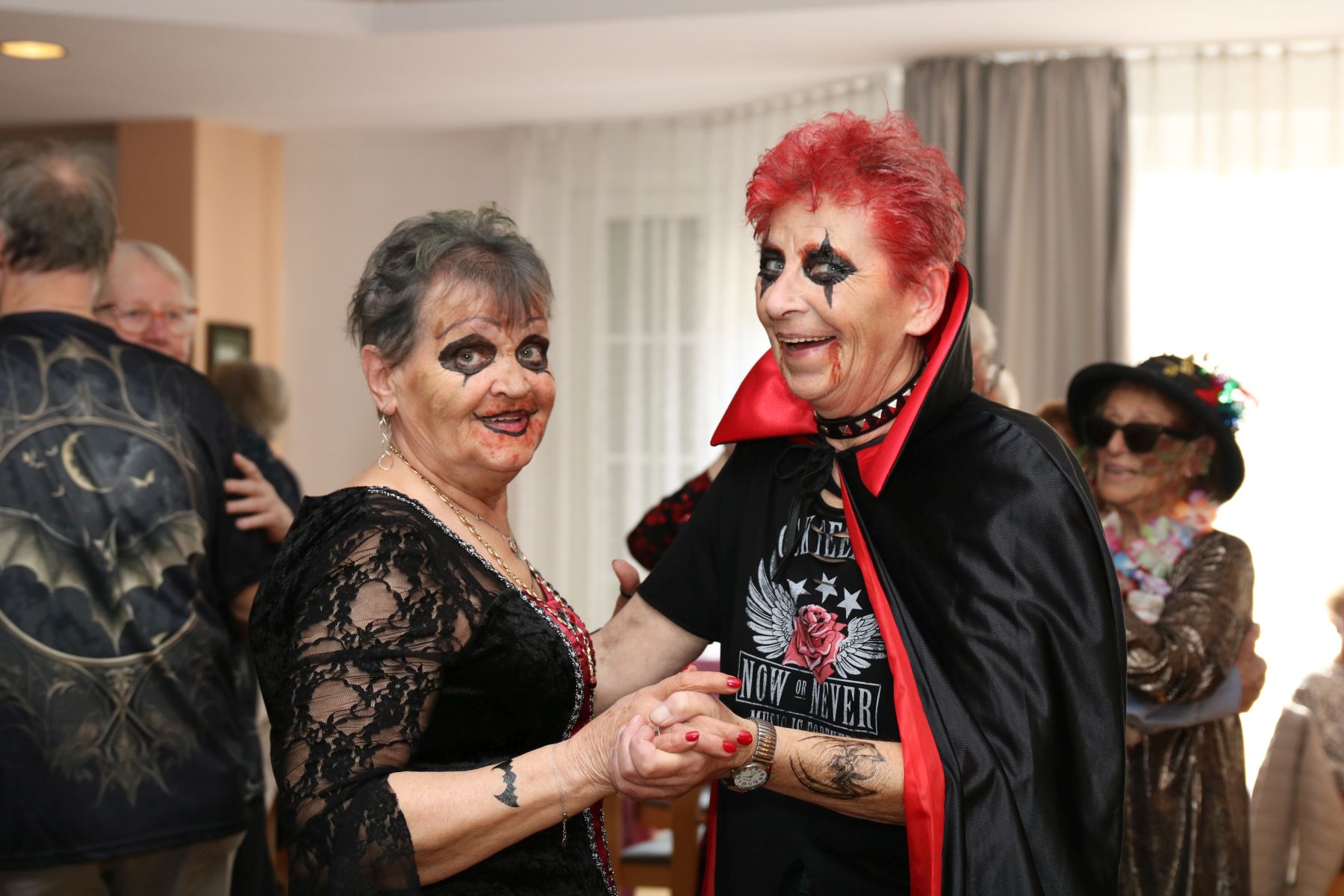 Eure Dekofeen Elisa und Gilla zauberten wieder eine schaurig-schöne Halloween-Dekoration. Hexen, Spinnenköniginnen, Fledermäuse, magische Kürbisse und Gespenster tanzten zu den schrecklich guten Ohrwürmern von DJ Manfred. Er legte wie immer die richtige Mischung aus Musikwünschen und Evergreens auf, sodass sich keiner mehr auf den Stühlen halten konnte. Wer noch nicht gruselig kostümiert war, durfte sich ein Spinnen- oder Gespenster-Tattoo aufkleben lassen. Unser Haus- und Hof-Animateur Klaus lud als weiteres Highlight des Nachmittags die „Förcher Rehbock Dancers“ ein, die mit ihrer Linedance-Performance die Tanzfläche zum Beben brachten.
