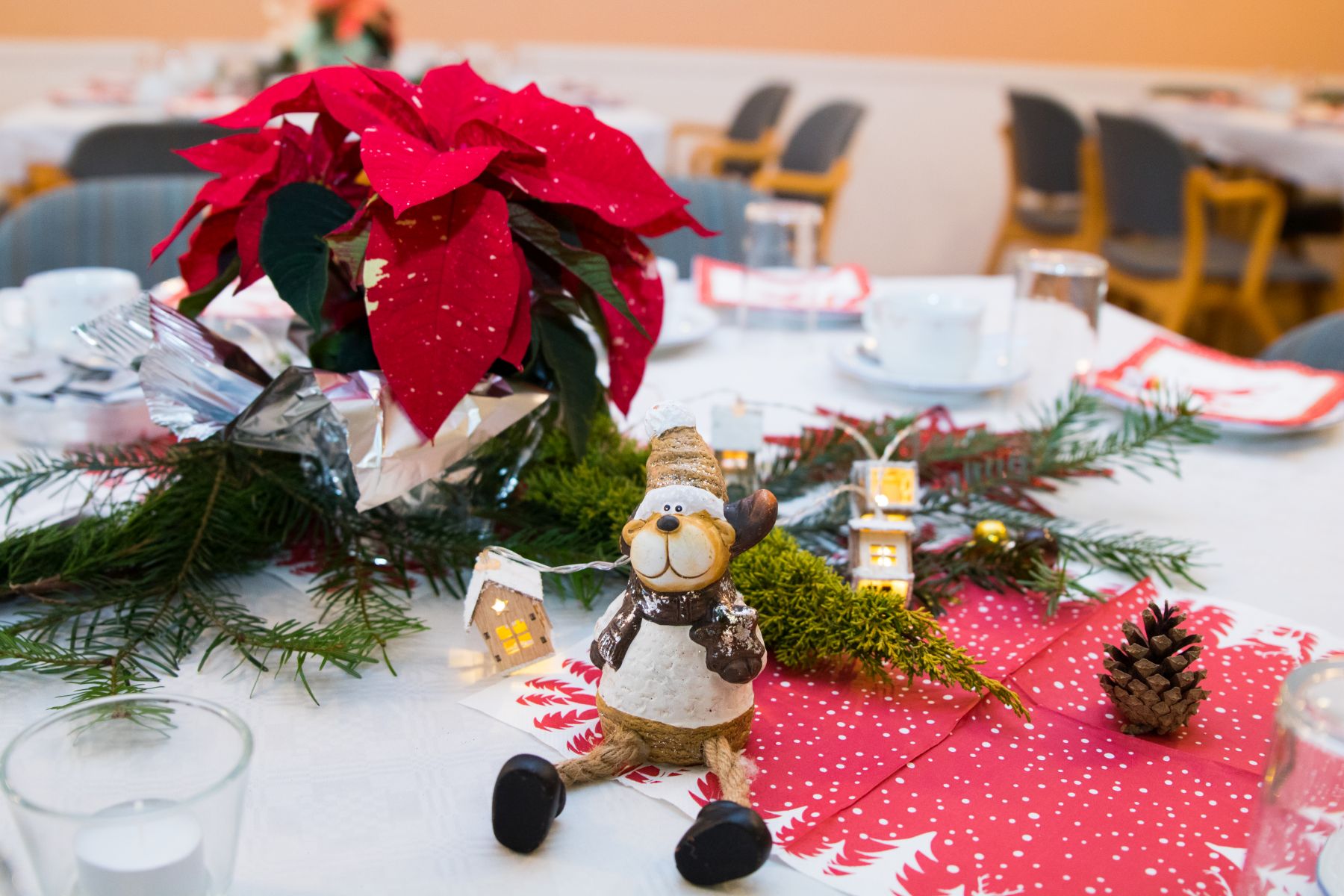 Schon beim Betreten des festlich geschmückten Saals kam Weihnachtsstimmung auf. Lichterketten, Tannenzweige, Schneeflocken-Girlanden sowie Weihnachtsterne und goldene Rentiere ließen den Saal funkeln, während die Gäste in stimmungsvollen Outfits glänzten – von Nikolausmützen bis hin zu leuchtenden Festtagsaccessoires.