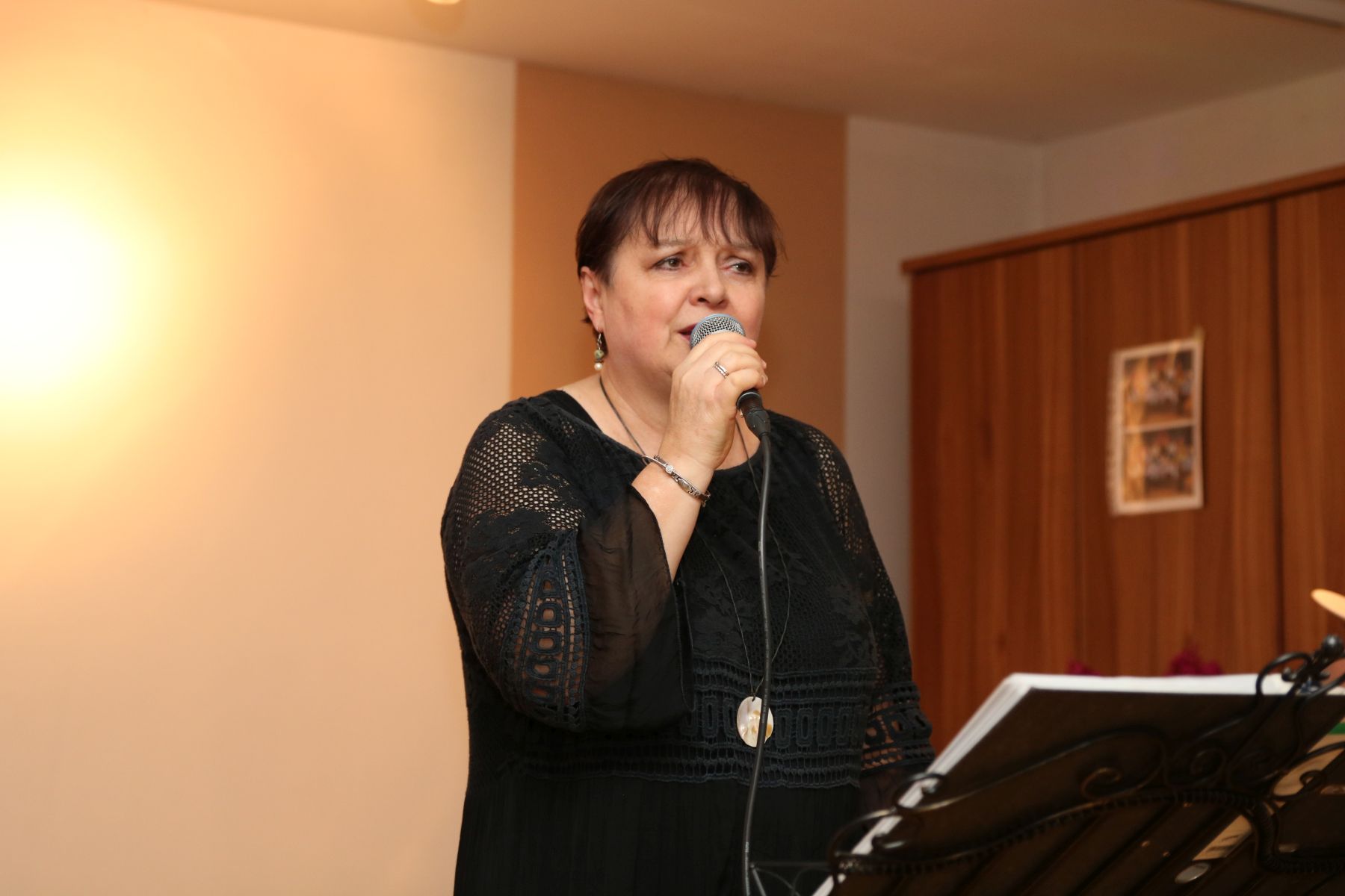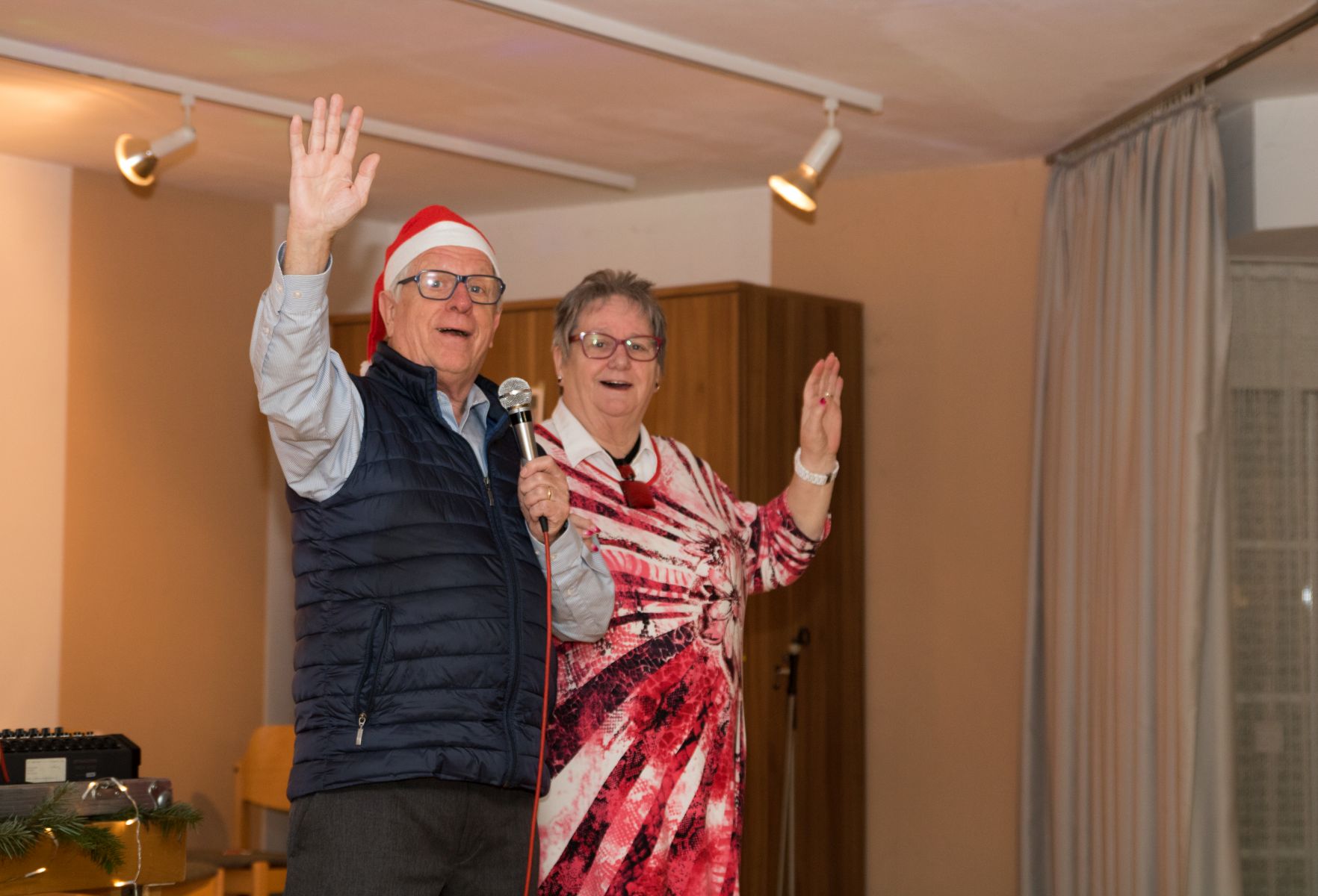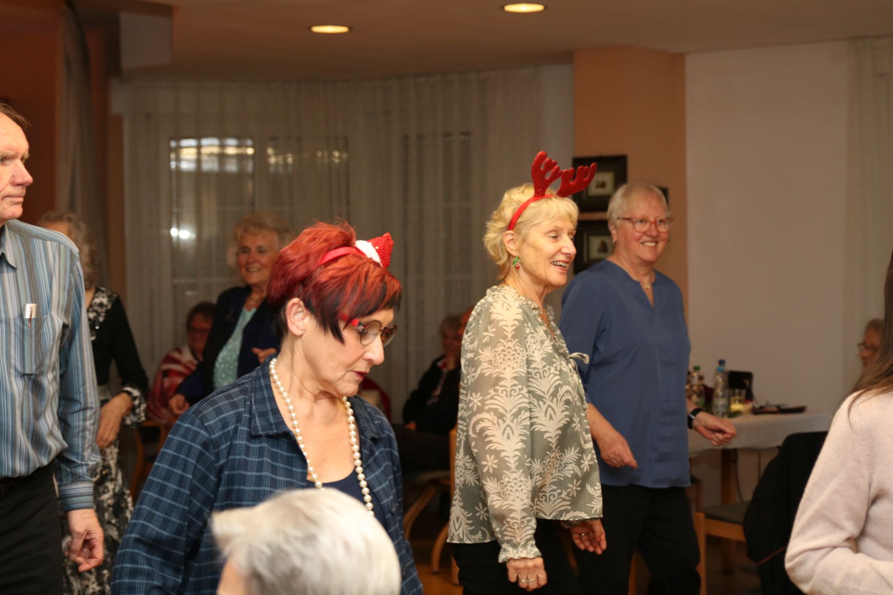 Ein ganz besonderes Weihnachtsgeschenk bescherte uns unser ehrenamtlicher Tanztee-Animateur Klaus: Denn als Überraschungsgast hatte er Sängerin Ines L. Behiri eingeladen, die viele der Gäste durch ihre Auftritte in der Region mit der Baden Brass Band kennen. Sie versetzte das Publikum mit ihrer samtigen Stimme und Liedern wie La Mer (Charles Trenet), Bésame Mucho (Consuelo Velázquez) und Rien de Rien (Edith Piaf) in gemütliche Festtagsstimmung.