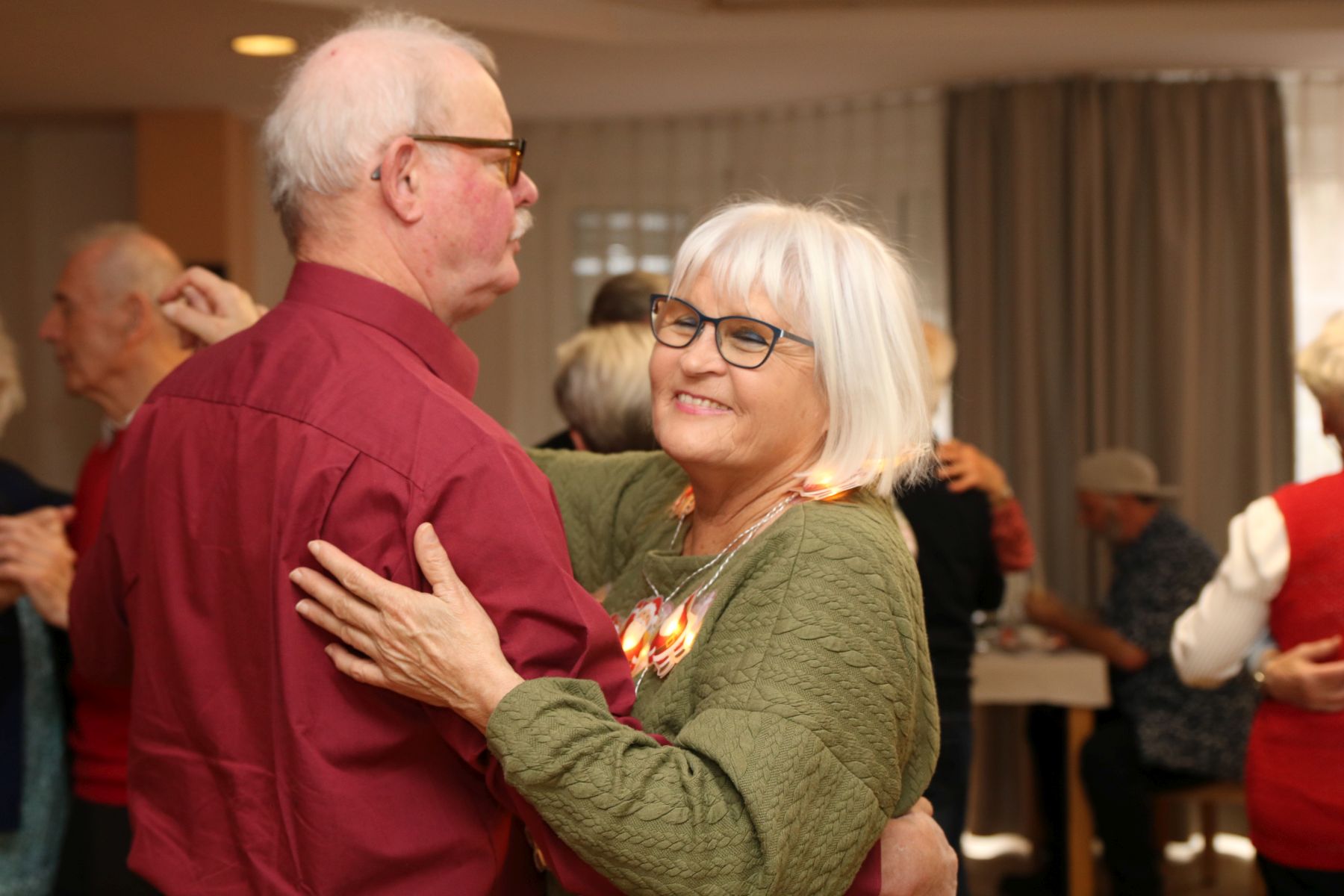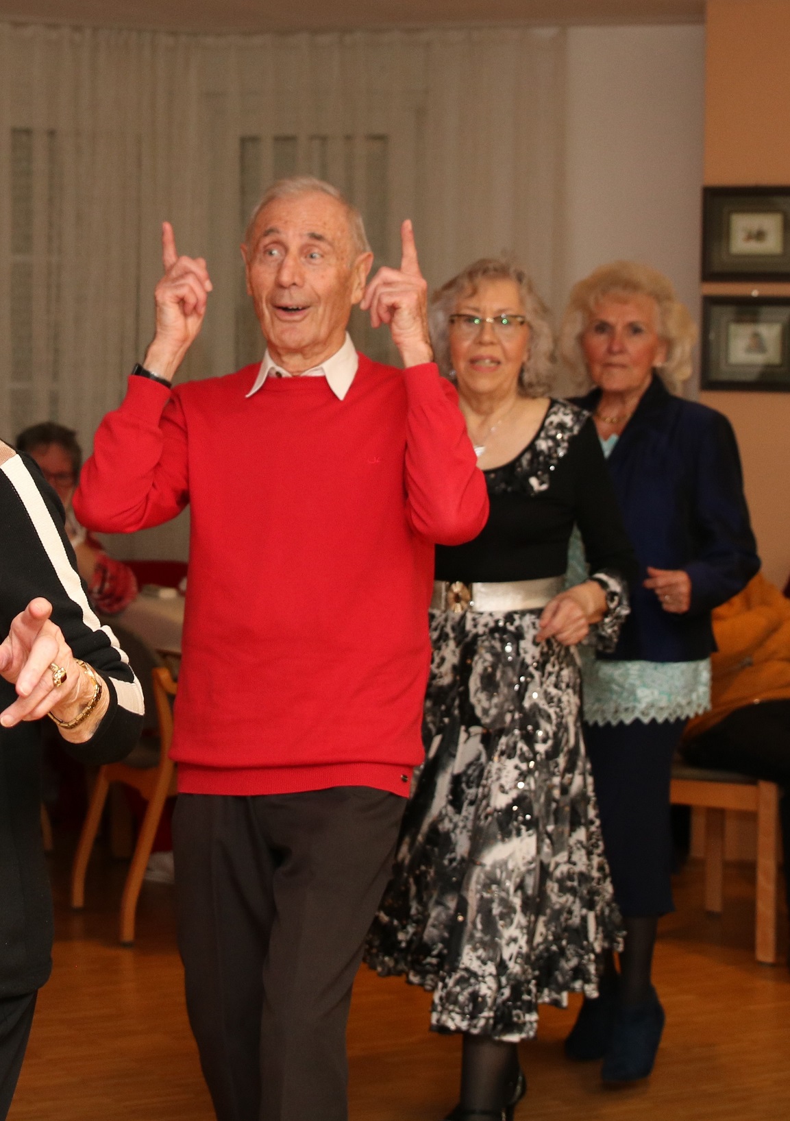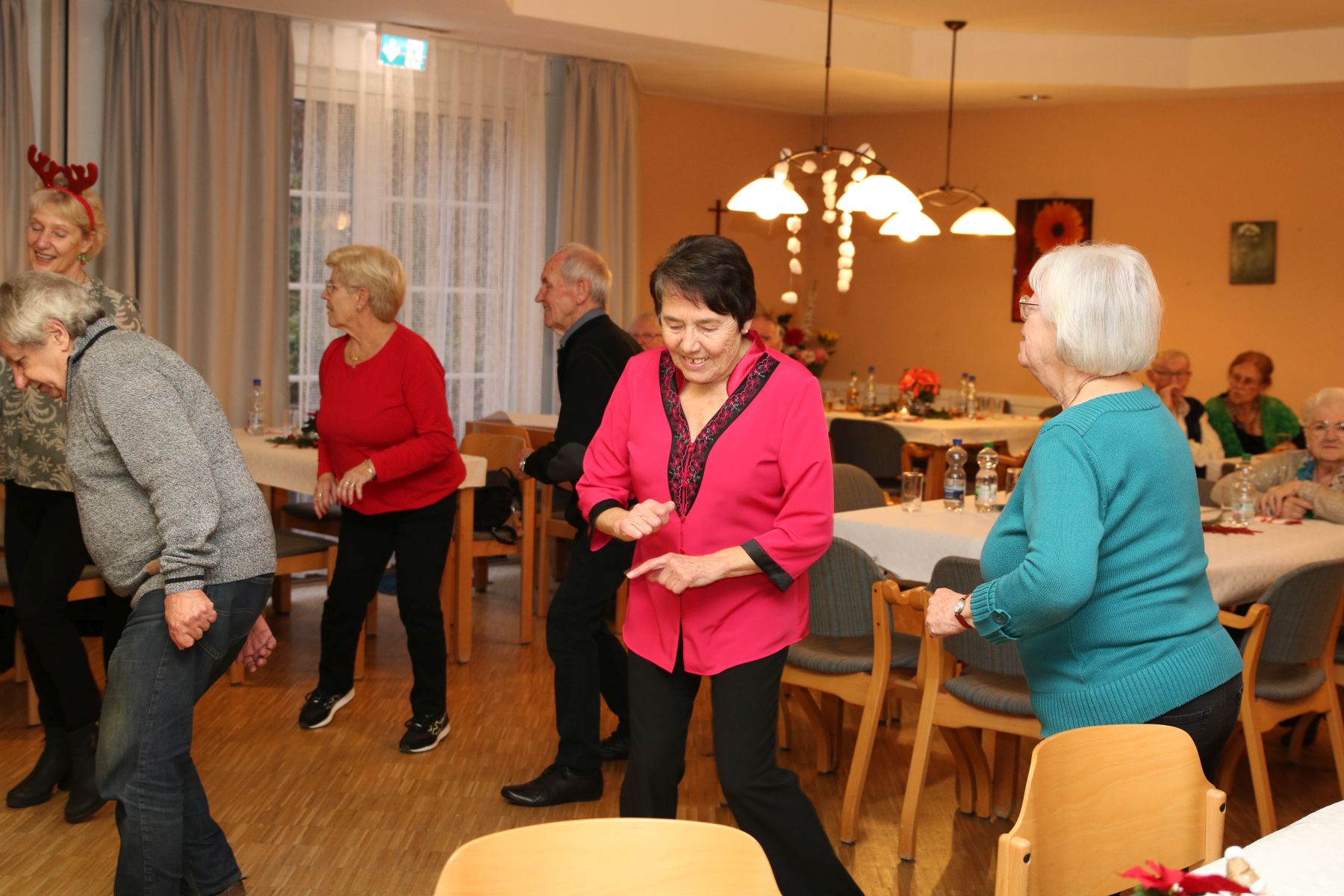 Ein ganz besonderes Weihnachtsgeschenk bescherte uns unser ehrenamtlicher Tanztee-Animateur Klaus: Denn als Überraschungsgast hatte er Sängerin Ines L. Behiri eingeladen, die viele der Gäste durch ihre Auftritte in der Region mit der Baden Brass Band kennen. Sie versetzte das Publikum mit ihrer samtigen Stimme und Liedern wie La Mer (Charles Trenet), Bésame Mucho (Consuelo Velázquez) und Rien de Rien (Edith Piaf) in gemütliche Festtagsstimmung.
